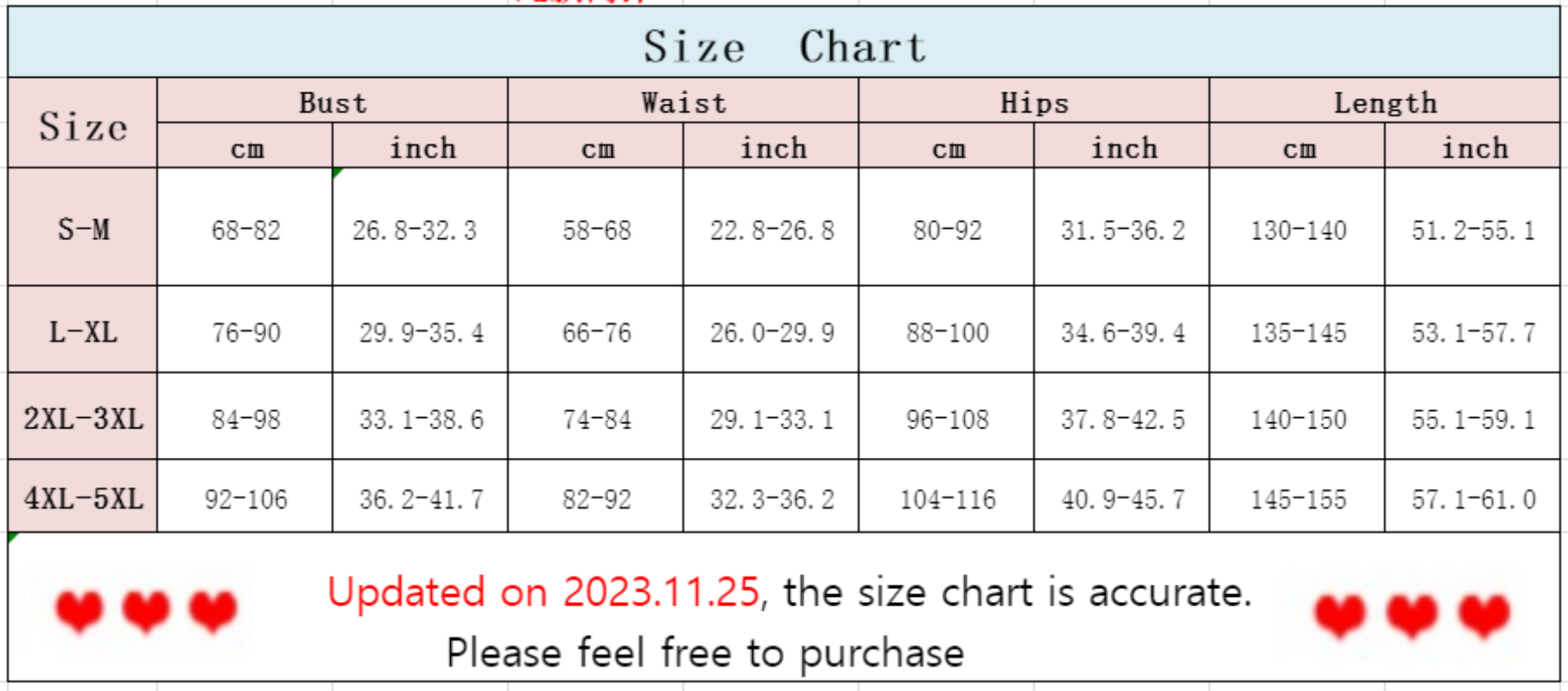 Please allow 1-3cm differences due to manual measurement, make sure to check your body measurement really matches to this set (All measurement in cm and please note 1cm=0.39inch)